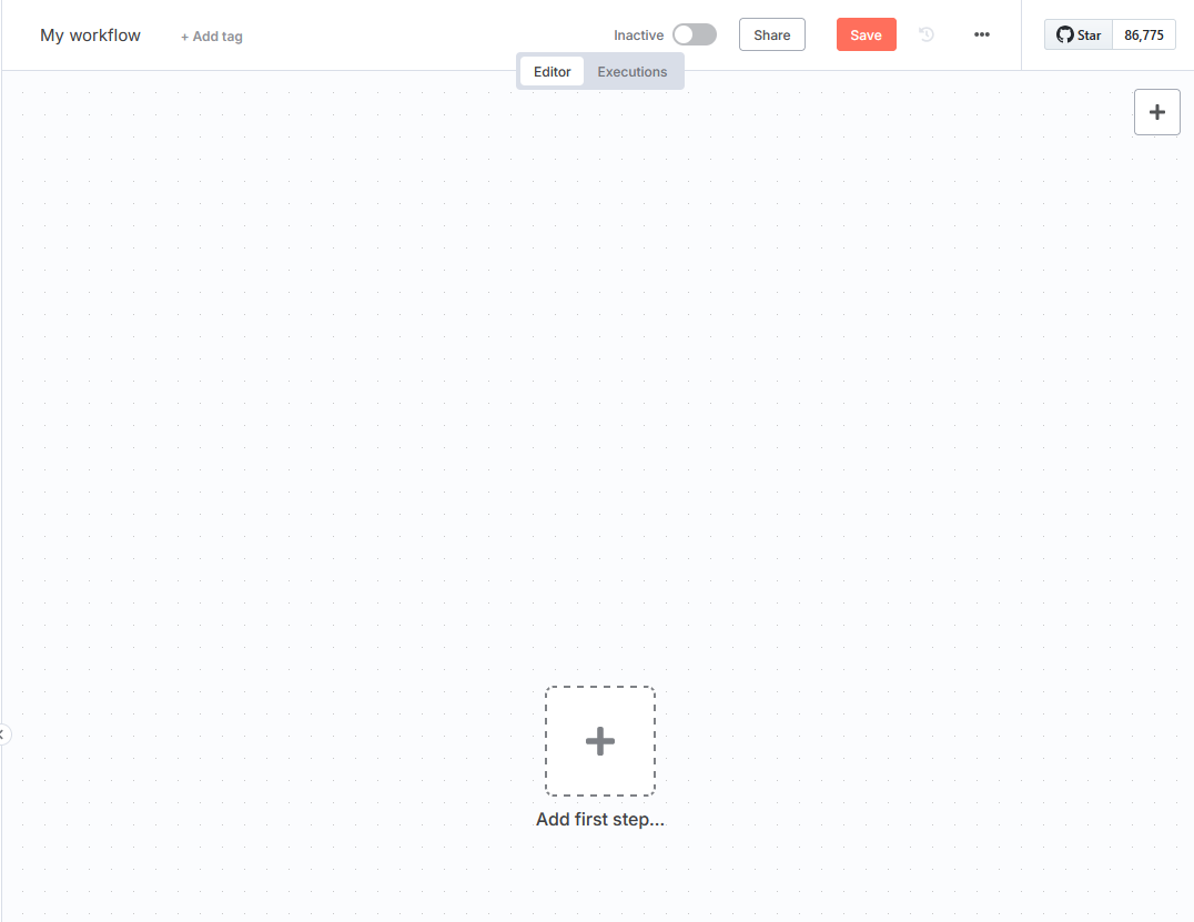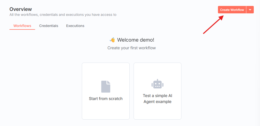 ทำการสร้าง workflow ใหม่โดยการกดที่ปุ่มขวาบน ("Create Workflow") ได้เลยครับ