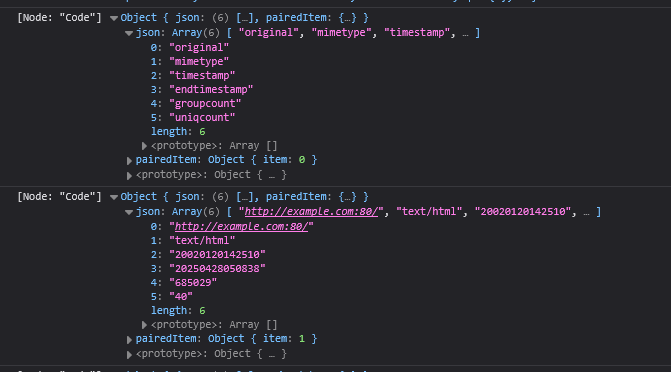 บนเส้นเมื่อรันแล้วจะเจอกับเลขอยู่นะครับ ซึ่งหมายถึงจำนวนข้อมูลปกติแล้ว N8N จะทำการ Loop ในข้อมูลแต่ละชุดให้เลยครับ จากด้านซ้ายมีข้อมูล 31 Object (รวม header) เอามาแปลงเป็นข้อมูลด้านขวาซึ่งจะเหลือ 30 Object ครับ