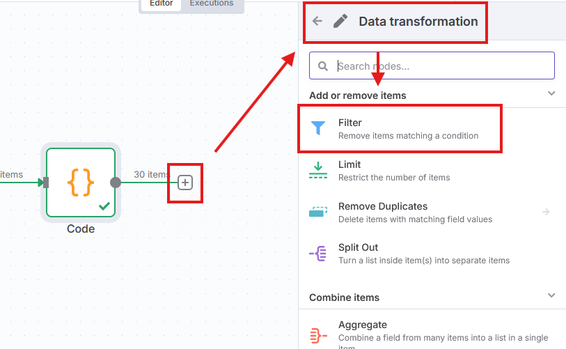 ซึ่งมันเอาไปใช้ต่อม่ายได้ครับ '-' ดังนั้นให้กด "+" ด้านขวาแล้วเลือก Node "Code" เข้ามาช่วยได้เลยครับ