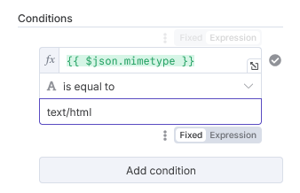 ส่วน OP: เลือกเป็น "is equal to" และ value ใส่เป็น "text/html" แบบในรูปครับ