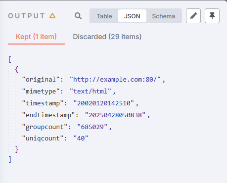 โดยที่ Output จะดูข้อมูลได้ 3 รูปแบบได้แก่ Table, JSON, Schema ซึ่งการทำงานจริง ๆ ของ N8N จะทำงานภายใต้ Object Array ครับ