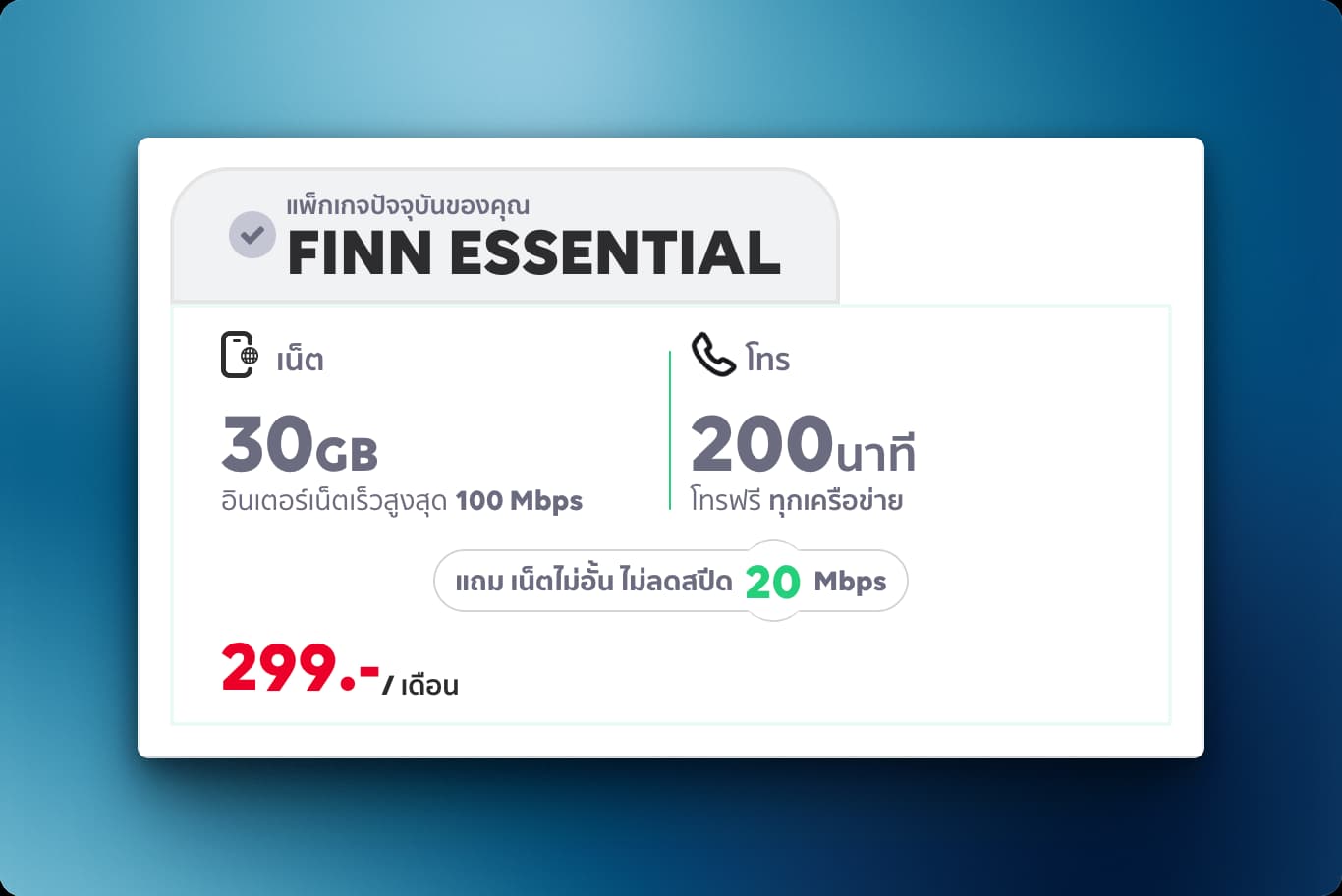 ที่ผมชอบก็คือมีเน็ตความเร็ว 20Mbps ให้ไม่จำกัดในทุก ๆ package เริ่มต้นที่ 259.- บาทต่อเดือน